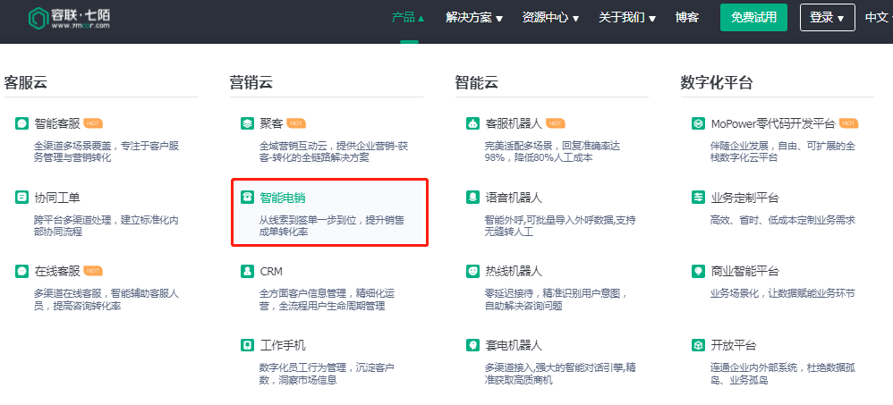 据悉,容联七陌成立于2014年,自称是“全国首创多渠道整合SaaS云客服,利用通讯能力以及IM技术解决企业客户服务难题”。2016年,该公司旗下云客服、云电销上线。2017年,公司推出AI产品-智能客服机器人。2018年,七陌成为容联集团(即“容联云通讯”)重要事业板块。目前,该公司先后推出面向企业营销、服务、数字化转型方向的多维度产品,其中聚客、云电销、AIcall等“解决企业增长难获客难困境”。