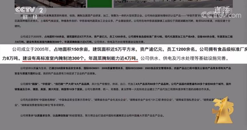据央视315晚会爆料,湖南插旗菜业官网声称的“使用标准化腌池腌制”其实仅供出口酸菜加工使用,而给国内食品企业提供的酸菜多从农田收购而来,既没有遵循标准化的加工流程,也未经卫生指标检验,存在极大的食用隐患。
