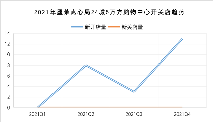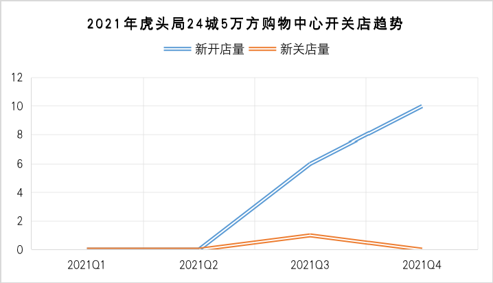 赢商大数据显示,虎头局和墨茉在2021下半年落位于24城5万方购物中心的门店持续攀升。进驻上海,虎头局选择的是如七宝万科、中山龙之梦、打浦桥日月光、上海来福士等清一色的购物中心;进军北京,墨茉偏好的是如西单大悦城、朝阳大悦城、合生汇等一连串的商业项目。