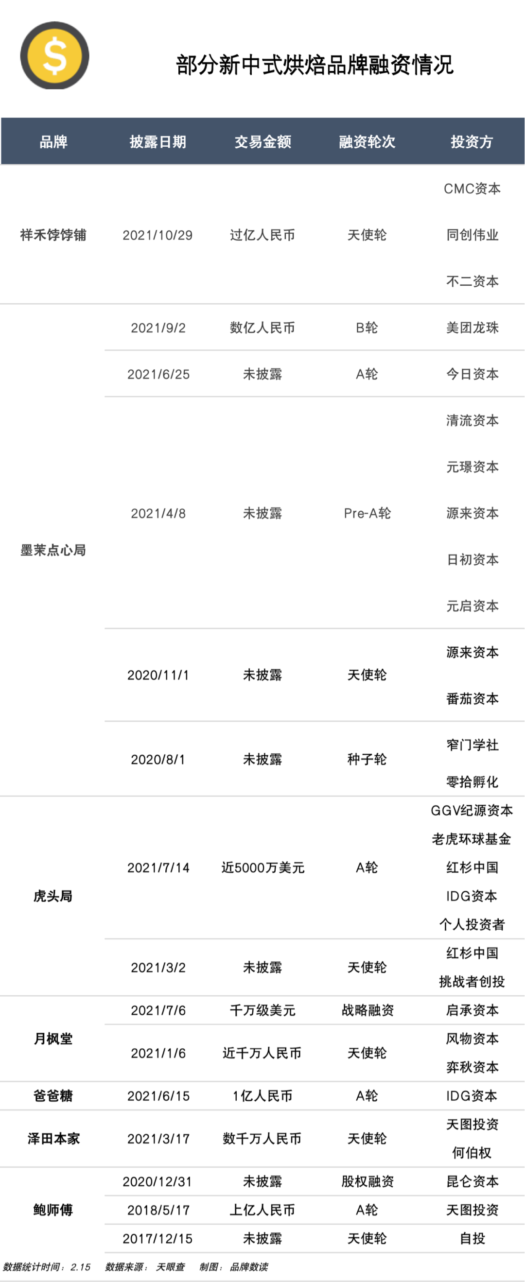 公开数据显示,2021年,多个烘焙品牌获得新一轮融资,且以千万级别居多。但虎头局和墨茉则在一年之内分别获得2笔和3笔融资,而数亿元的融资金额让业内人士直呼高攀不起。