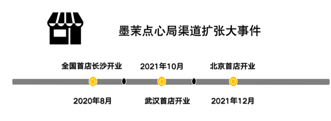 从分布情况来看,墨茉长沙门店的占比高达近80%,入驻武汉和北京两地的时间点则皆晚于虎头局。