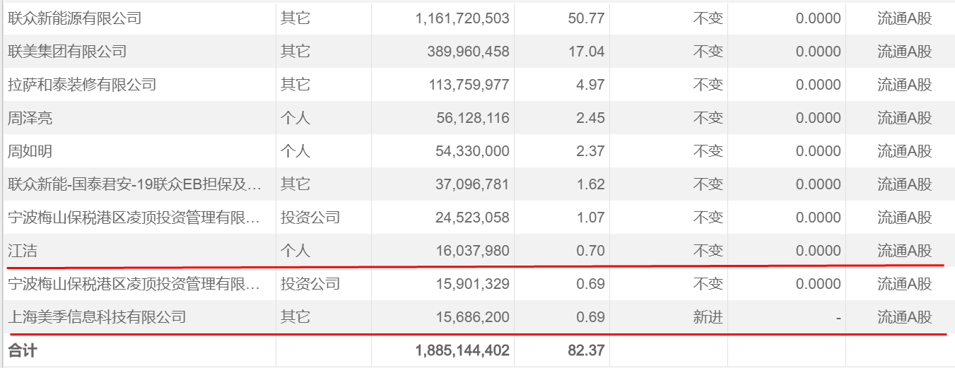 2015年第四季度,江洁开始出现在联美控股的前十大股东名单中,持股数量为431.58万股,持股比例为2.05%,为联美控股第四大股东。