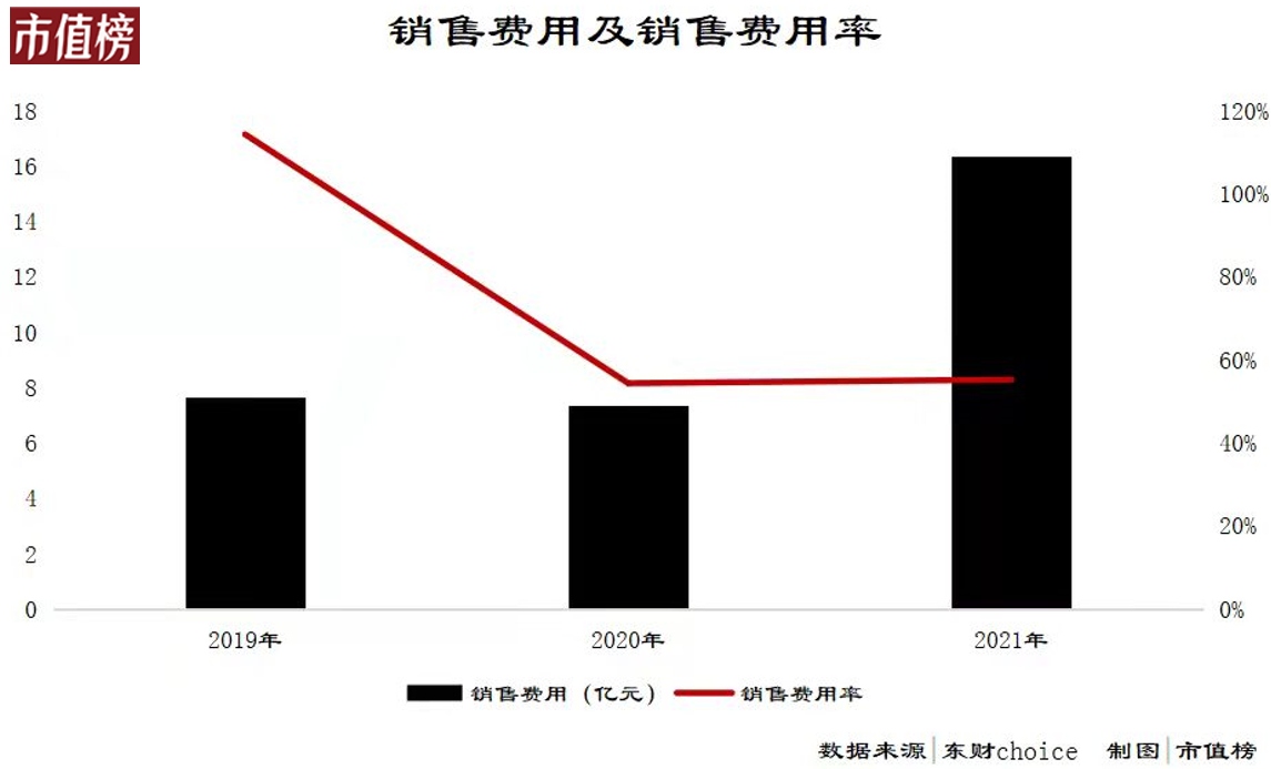为了扩大用户规模,知乎的销售费用连年增长,2021年为16.35亿元,同比增长122.5%,占收入的比重为55.25%。