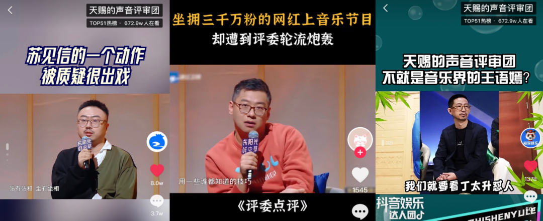 如今很多音综不注重舞台演绎和推歌机制,反而更加重非音乐的内容,如《天赐的声音3》故技重施地把毒舌鉴音团捧上C位,走黑红营销路线,如此本末倒置的音综打法是需要综艺从业者去避免和警惕的。