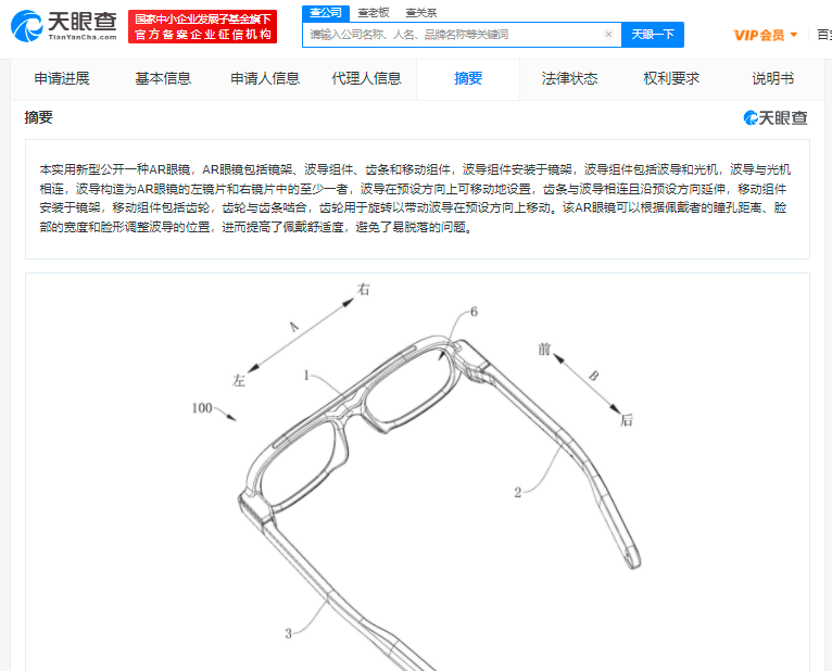 天眼查App显示,3月15日,北京小米移动软件有限公司的一项“AR眼镜”专利获授权。专利摘要显示,该AR眼镜包括镜架、波导组件、齿条和移动组件,可以根据佩戴者的瞳孔距离、脸部的宽度和脸形调整波导的位置,进而提高了佩戴舒适度,避免了易脱落的问题。