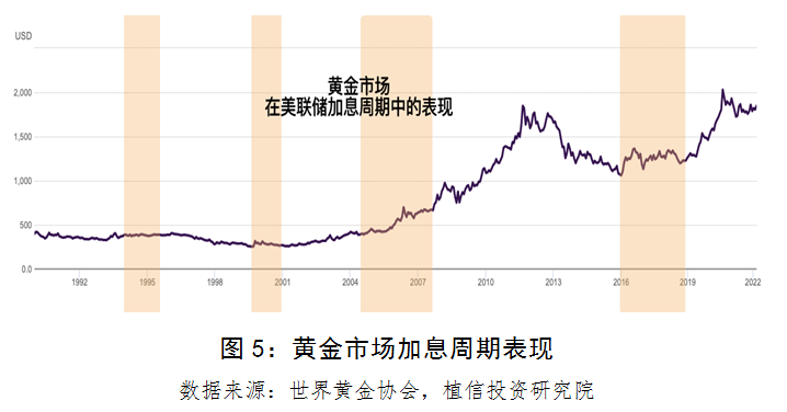从过去三十年美联储四次加息周期来看,金价走低并不是加息的必然结果。这四次加息周期中,黄金市场两次走高两次持平,表明了名义利率并不能决定黄金市场走向,计入通胀后的实际利率、黄金供需基本面、市场避险情绪等因素都会对金价产生影响。
