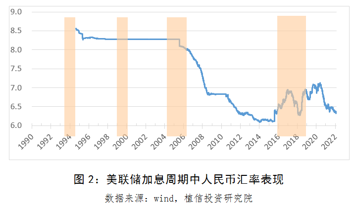 回归历史经验可以发现,美联储加息并不一定带来人民币贬值。美联储加息期间,人民币汇率升值或贬值主要取决于中国经济基本面及国际收支状况。本轮美联储加息对人民币汇率影响相对有限,原因在于: