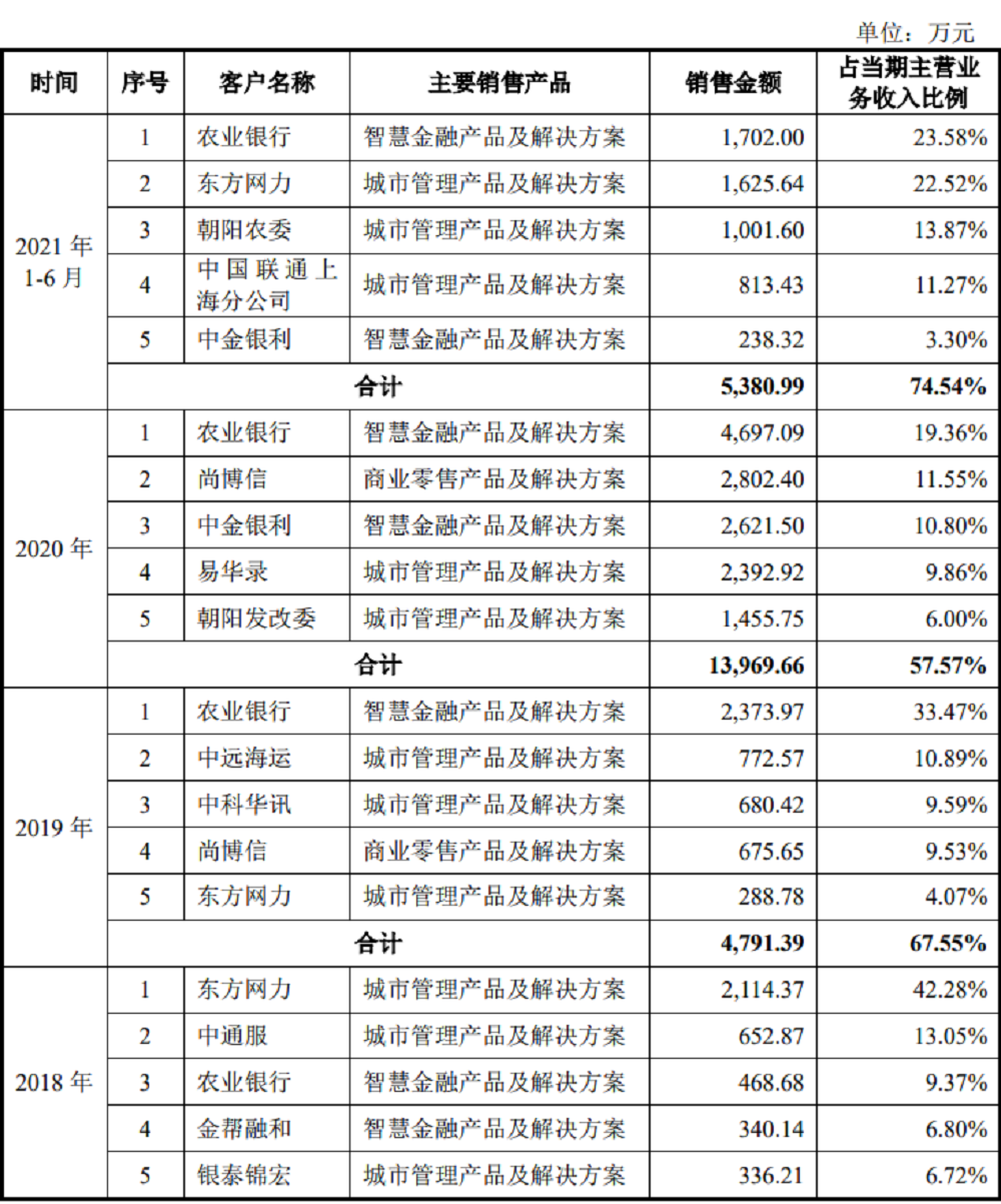 根据招股书,格灵深瞳的主要客户有农业银行、尚博信、东方网力、朝阳农委、中国联通上海分公司、中金银利、易华录、朝阳发改委、中远海运、中科华讯、中通服、金帮融和、银泰锦宏11家机构或企业。