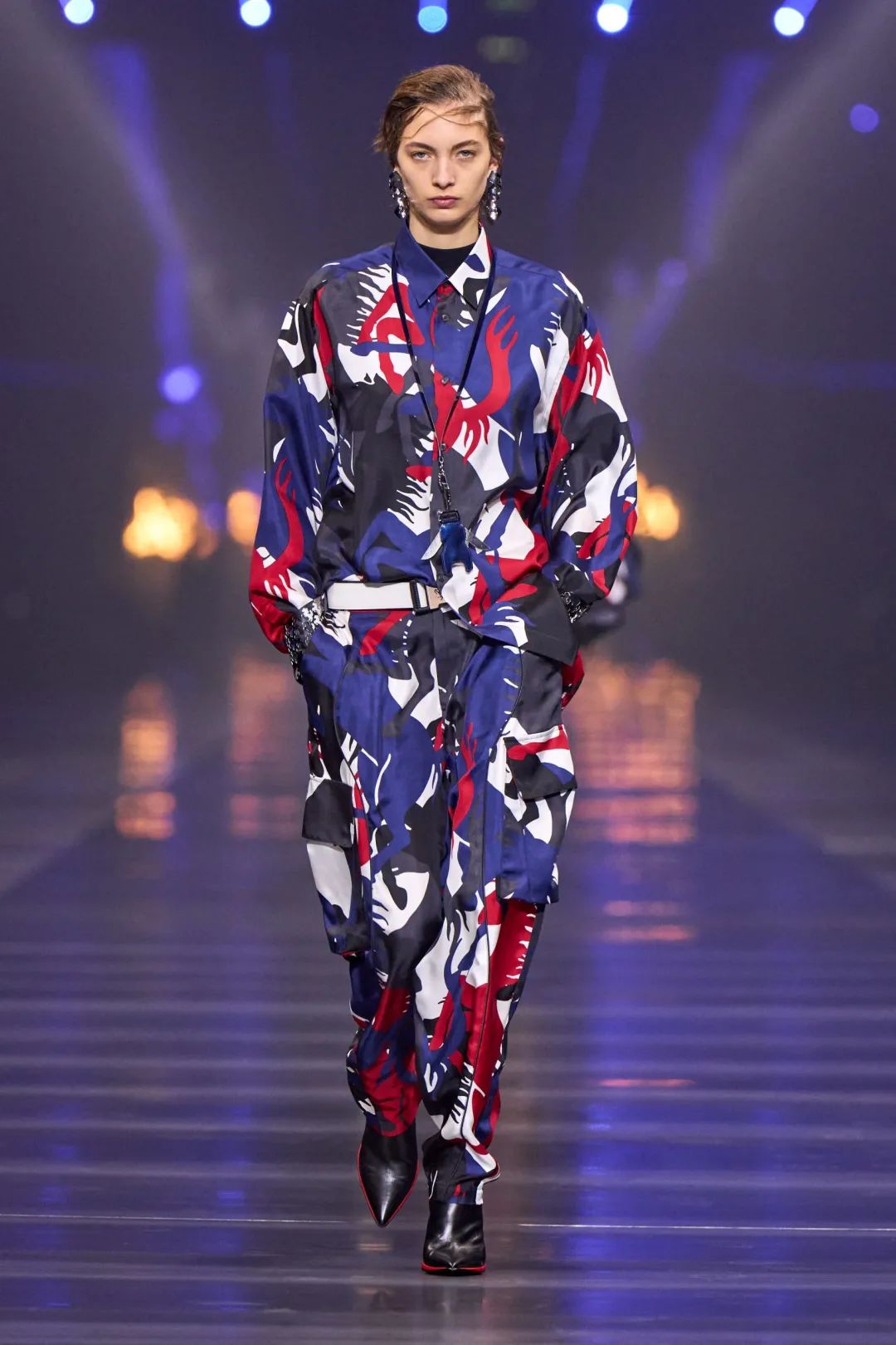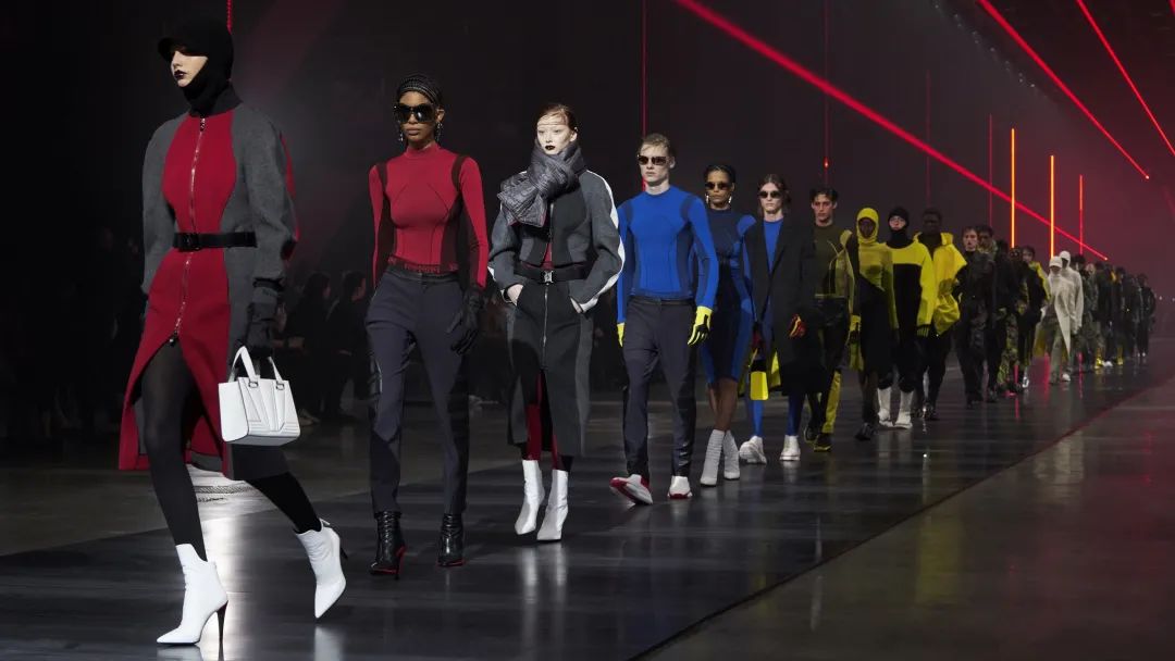 在去年的首场大秀时,我们的关注点在汽车的所有“硬件”细节上,比如汽车的外观线条等;此次全新系列我更多的是讲述关于速度的故事——它刻写在法拉利的基因之中,也代表着社会在不断变迁中对创新的渴求。由此,我关注到速度与技术、光线与表面、未来与现实,对这些内在联系的思索贯穿于整个系列,驱动我采用结合多种面料和外形的设计手法。