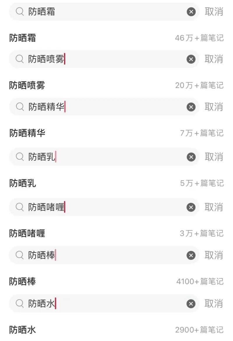 记者将6款防晒品类在小红书上的笔记数量做了一个梳理,可以看到整体呈现以防晒霜>防晒喷雾>防晒精华>防晒乳>防晒啫喱>防晒棒的排列。在一定程度上也可以看出,消费者的需求正在进一步细化。