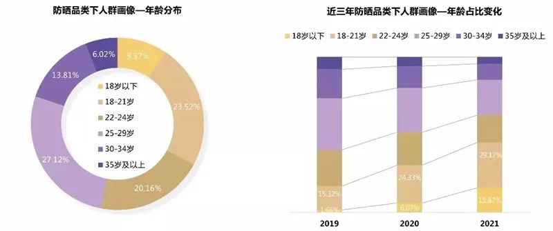 关注防晒的群体中,女性消费者仍然是主力,但男性消费者的关注度近年来呈直线上升的趋势,可见男性消费群体在防晒市场中具有很大潜力。同时,从年龄分布来看,Z世代成为了防晒消费主力军,用户低龄化趋势明显。