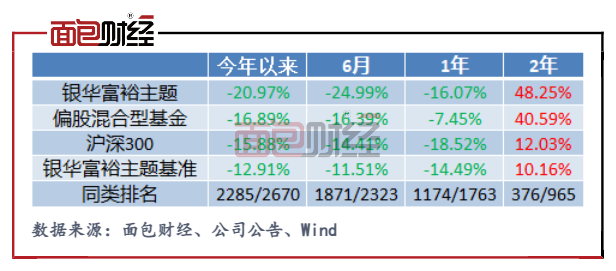 而2021年三季度开始,银华富裕主题遭受重创,三季度该基金净值下跌17.23%,四季度又再次下滑6.89%。今年以来,银华富裕主题下跌幅度更是超过20%,比业绩基准多跌了近8个百分点,同类排名已处于末位梯队。