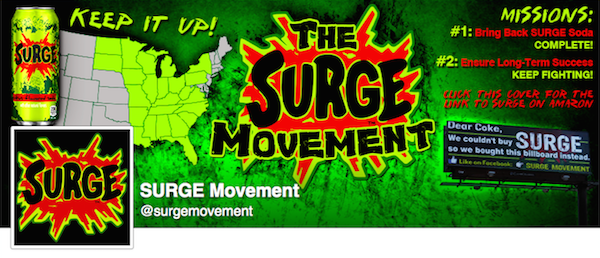 这场回归也有Surge粉丝的功劳,这群骨灰粉曾在社交媒体上发起了“The SURGE Movement”活动呼吁Surge回归,并且在2013年筹集了4000美元到可口可乐亚特兰大总部买了一个大型广告牌,深情写道“亲爱的可口可乐,虽然我们买不到Surge,但是我们可以买广告。”