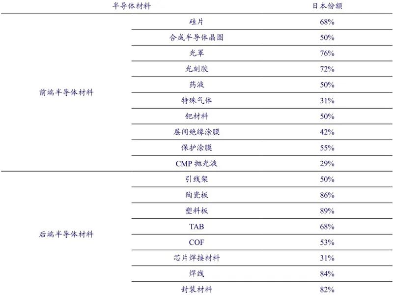 当前,日本在整个半导体供应链材料、设备等上游环节,有着很明显的优势地位。