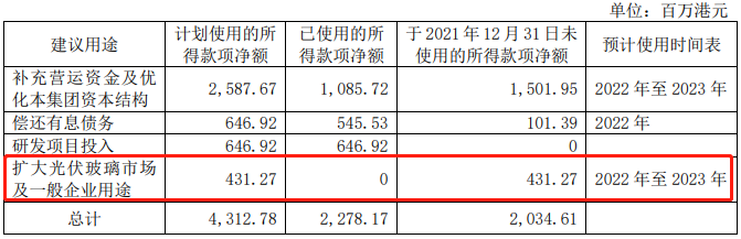 福耀玻璃也正在进军光伏行业。2021年5月,公司增发1.01亿股H股,募资43.13亿港元(约35.06亿元人民币),用于扩大光伏玻璃市场等项目。同时,公司位于美国的全资子公司福耀玻璃伊利诺伊有限公司具备生产光伏组件背板玻璃的能力。