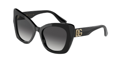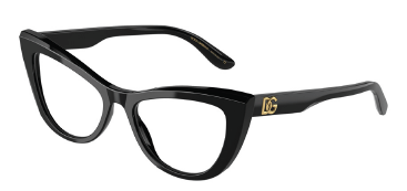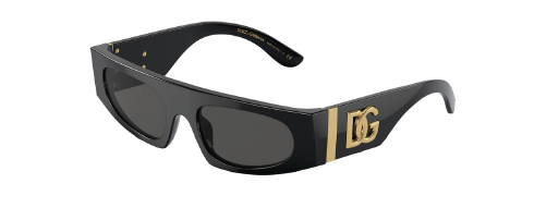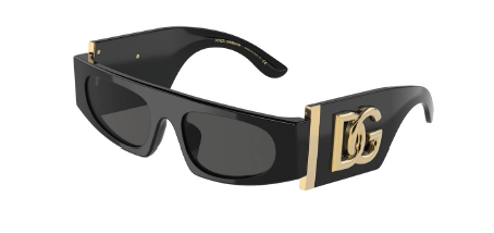 镜架采用富有光泽的黑色醋酸纤维,镜腿饰有标志性 DG 交叉徽标压花,配以金属铰链,一系列金色金属细节令眼镜更添韵致。