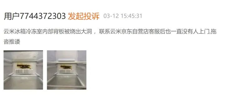 在新浪黑猫投诉平台上,针对云米的投诉量累计为888件,涉及智能马桶裂口、热水箱循环重启、洗碗机漏水、冰箱不制冷等质量问题;而微博、贴吧、知乎等平台,也有关于云米产品质量差、售后服务乱的声音。