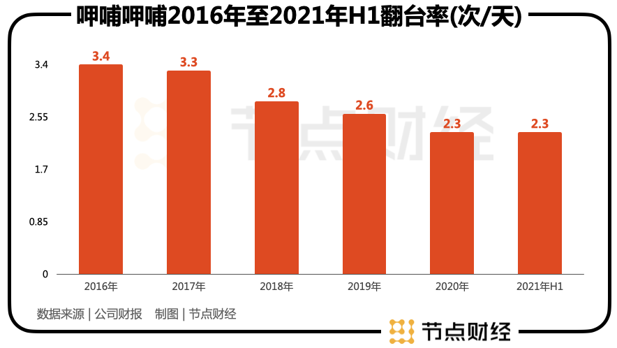 体现在翻台率的数据上,曾经呷哺部分门店的翻台率可以达到7次/天,但这一数据到2021年上半年,已经下滑到2.3次/天。