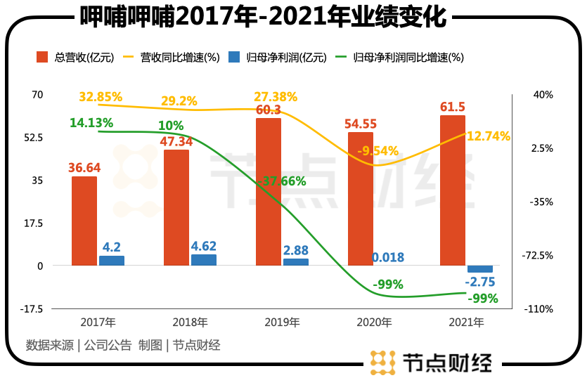 近日呷哺发布盈利预警,预期其2021年收入约为61.5亿元,同比增长约13%;净亏损约2.75亿元至2.95亿元。在营收上,公司已经恢复到了疫情之前2019年的水平,但净利润却从盈利2.88亿元变成了巨额亏损。