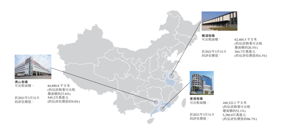 依赖母公司这一稳定的租客来源,三大物业出租率达95.8%,较去年中期微涨0.1个百分点。其中,青衣物业、芜湖物业、佛山物业出租率分别为92.6%、98.5%、100%(2021年6月30日分别为92.6%、97.9%、100.0%)。