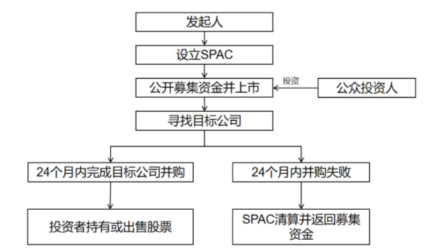 简单来说,SPAC是一个壳公司,设立它的目的在于上市后通过增发股票从投资机构和散户投资者那里募集资金,去收购一家具估值增长潜力但离上市要求还有一定距离的私营企业(通常为中小型创业公司),即SPAC并购交易,从而使该私营企业迅速实现上市,而SPAC的发起人及投资人也将得到一部分股权作为回报,既可以卖出股权落袋为安,也可以继续持有待股价上涨获得更高的投资回报。
