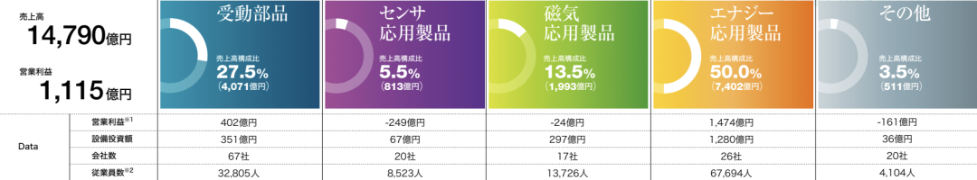 TDK被动元器件、传感器、磁材、能源及其他业务最新财年(2020年3月-2021年3月)数据 图源:TDK Integrated Report 2021