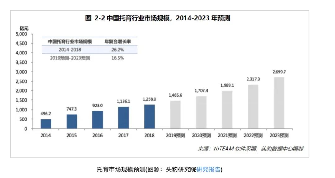 虽然现在开放三胎鼓励生育,但人们还是“不愿意生”,托育行业未来的市场规模上限恐怕难以达到预测的高度。