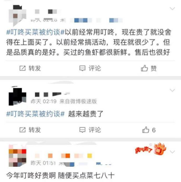 调价以提高客单价的方式固然能改善毛利表现,却也遭到来自顾客们的不满,社交平台上不少顾客反映:叮咚买菜上的商品越来越贵了。通过提升商品品质和差异化,来增强用户粘性,从目前来看这种方式的有效性还有待考证。