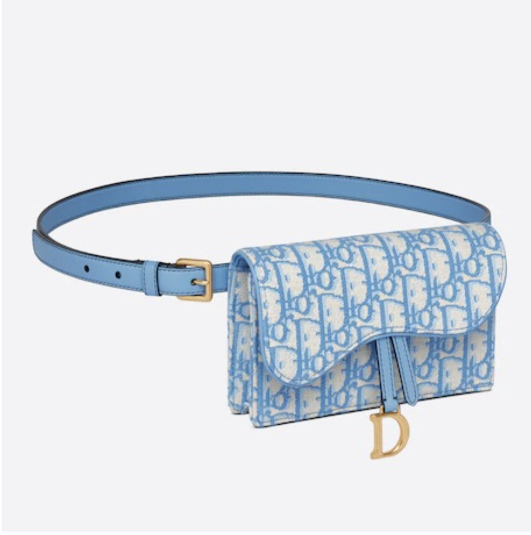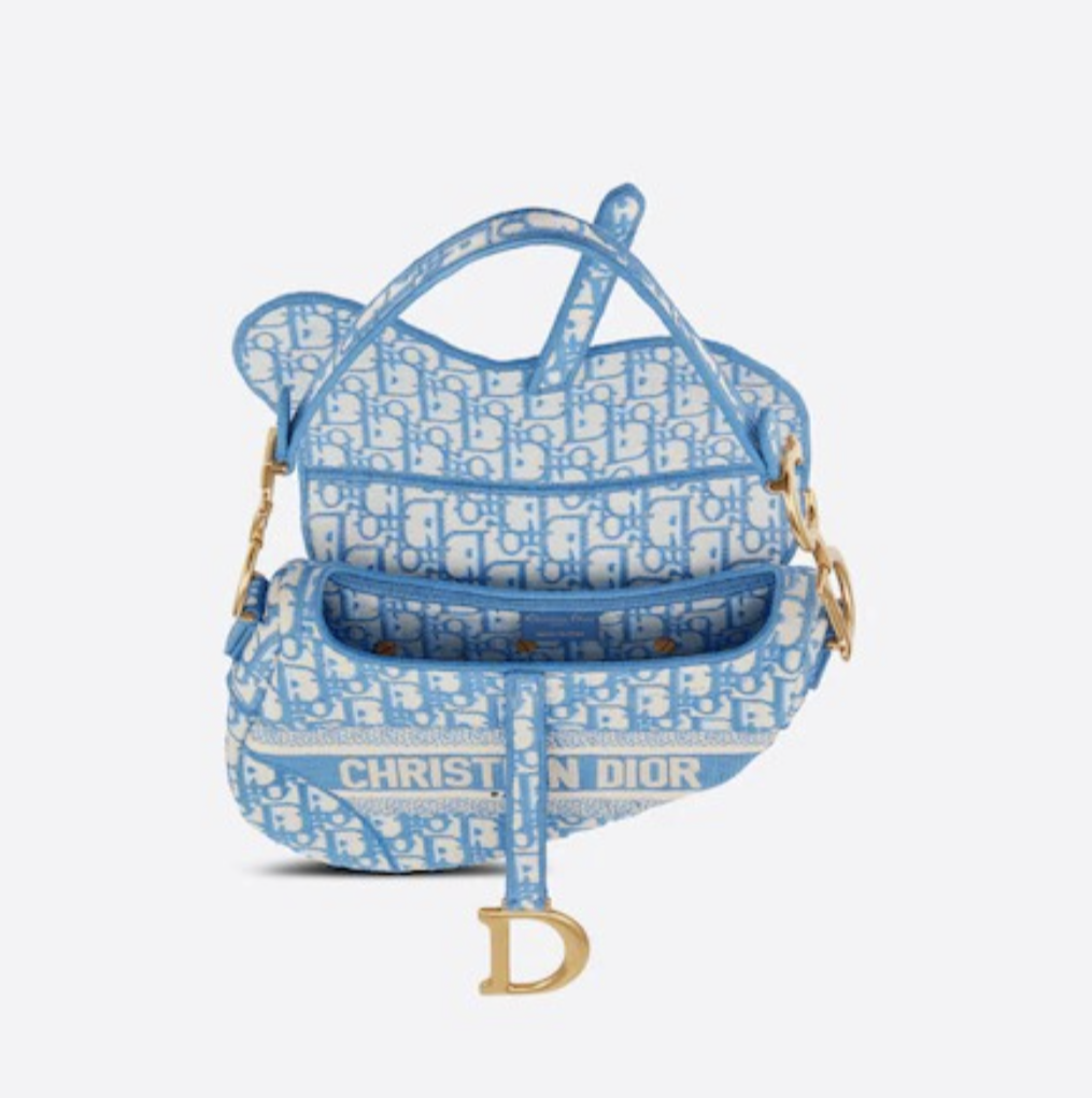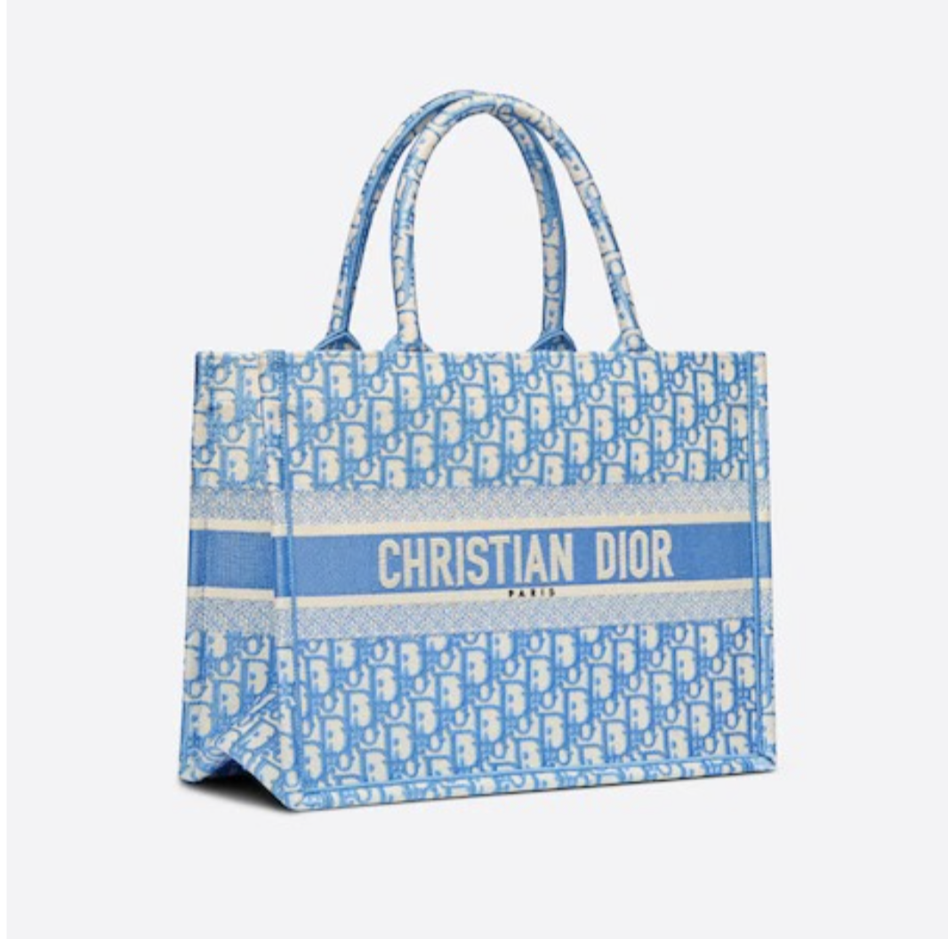 这次“矢车菊蓝”Oblique包袋系列囊括了令人惊喜的多款包型,不仅有实用的托特包,更有精致小巧的Saddle Belt Pouch。托特包则有Medium Book Tote(高28cm x 宽36.5cm)和Mini Dior Book Tote (高22.5cm x 宽24cm)两种尺寸可供选择,它们特别之处在于不同的手柄样式和轮廓剪裁,中号托特包延续之前的圆柱型细手柄,包身并无变化,容量很大也很耐用;而迷你款则更显别致,在原有长方形包身的基础上为整体轮廓增添“边框”效果,不管是手柄还是边缘剪裁都更加时髦,显现3D立体视觉风格。