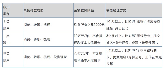 根据新规要求,实名认证的账号主要分为三类,不同类型账号的余额付款功能、余额支付限额不同。