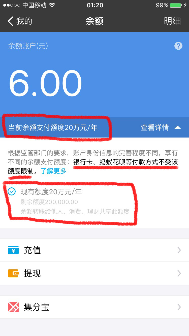 对于20万最高限额的问题,在新规中已经明确强调是“余额支付限额”。如果用户通过银行卡快捷支付、网银、蚂蚁花呗等其他方式进行支付的话,并不会受到任何影响。
