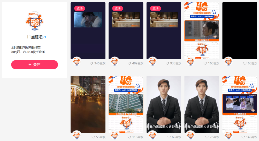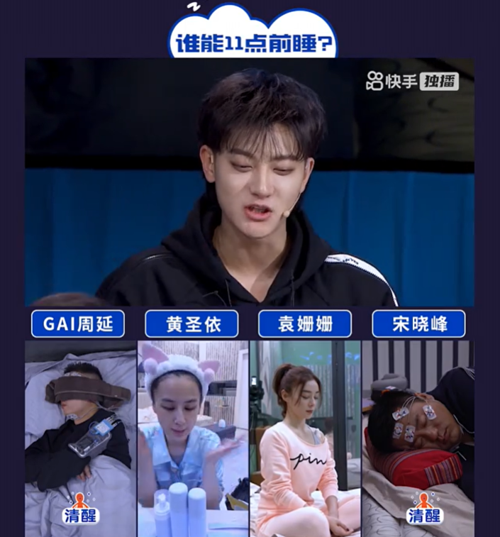 2月24日,快手播出了号称全网首档“明星劝睡综艺”的《11点睡吧》,口号是“high什么high,早点睡”,让节目里的明星挑战在11点之前睡觉,也呼吁屏幕外的大众健康睡眠。