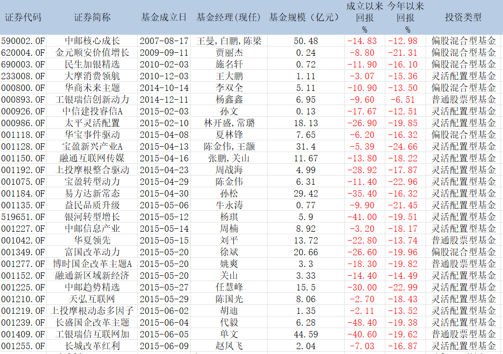按照成立年份来看,在2015年、2018年两个年份高位成立是基金负收益的重灾区。