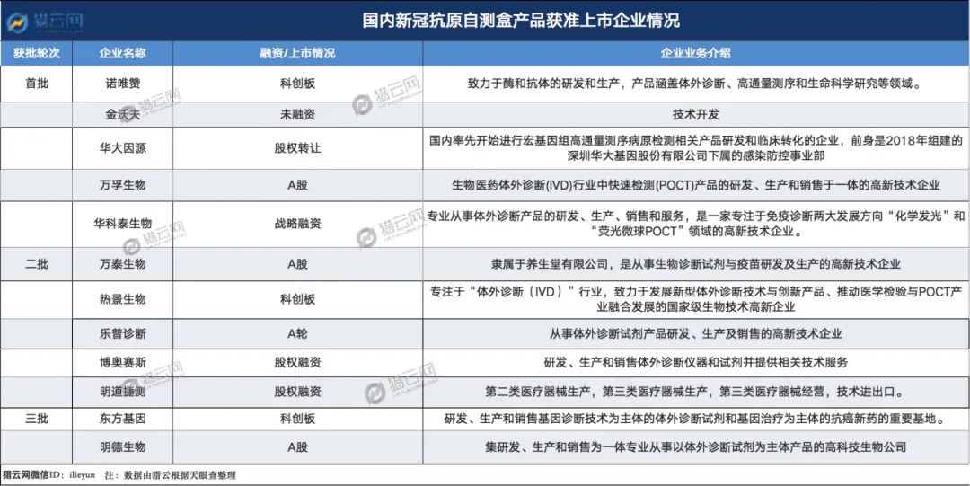 他指出,从产品看,如果企业有足够的技术积累和快速报证的团队以及丰富的经验,能够短时间内做出产品、报产品注册证,那么对于一个还是跑马圈地阶段的新增需求市场而言,还有机会获得一定市场份额。从产业链去看,对于一些在帮助新冠试剂盒快速商业化,通过线上线下的渠道资源使其能够快速触达更多的人群,或许是积累不多的创业公司可以考虑的角度。