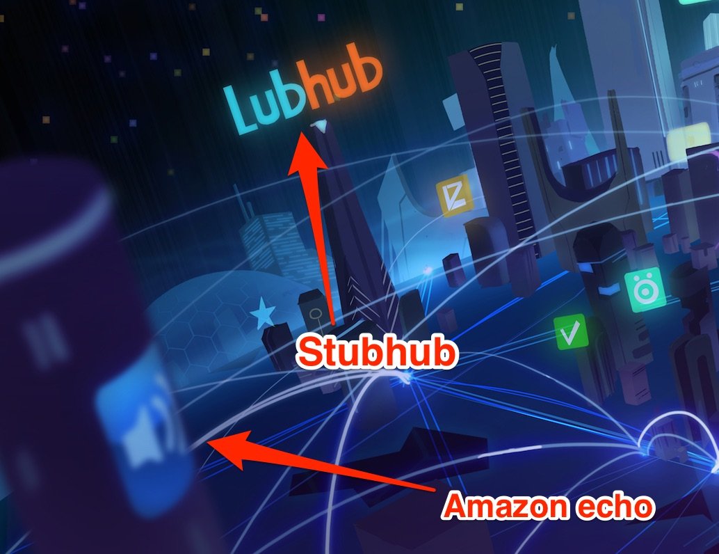 如果你能找到海报最左下方的Amazon Echo和Lubhub(票务网站StubHub),那你真的是一位眼力达人呢。