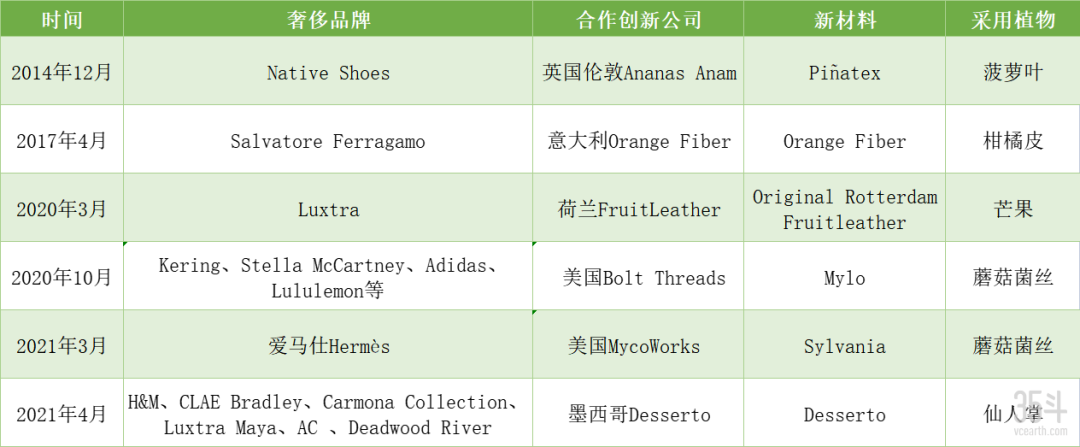 表1:近年来奢侈品牌与植物皮革创新公司合作概况,数据来源:据公开资料整理
