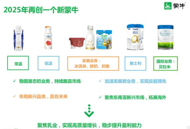 2021年3月,在蒙牛2020年度业绩说明会上,卢敏放再次表示:到2025年,蒙牛的品类结构肯定会发生变化,奶酪、鲜奶、奶粉三大业务都会上到100亿以上规模。