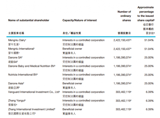 公开资料显示,雅士利目前的前三大股东持股情况是,蒙牛方面持股比例约为51.04%,达能方面持股约25%,张雁桂等关联方持有6.39%股权。