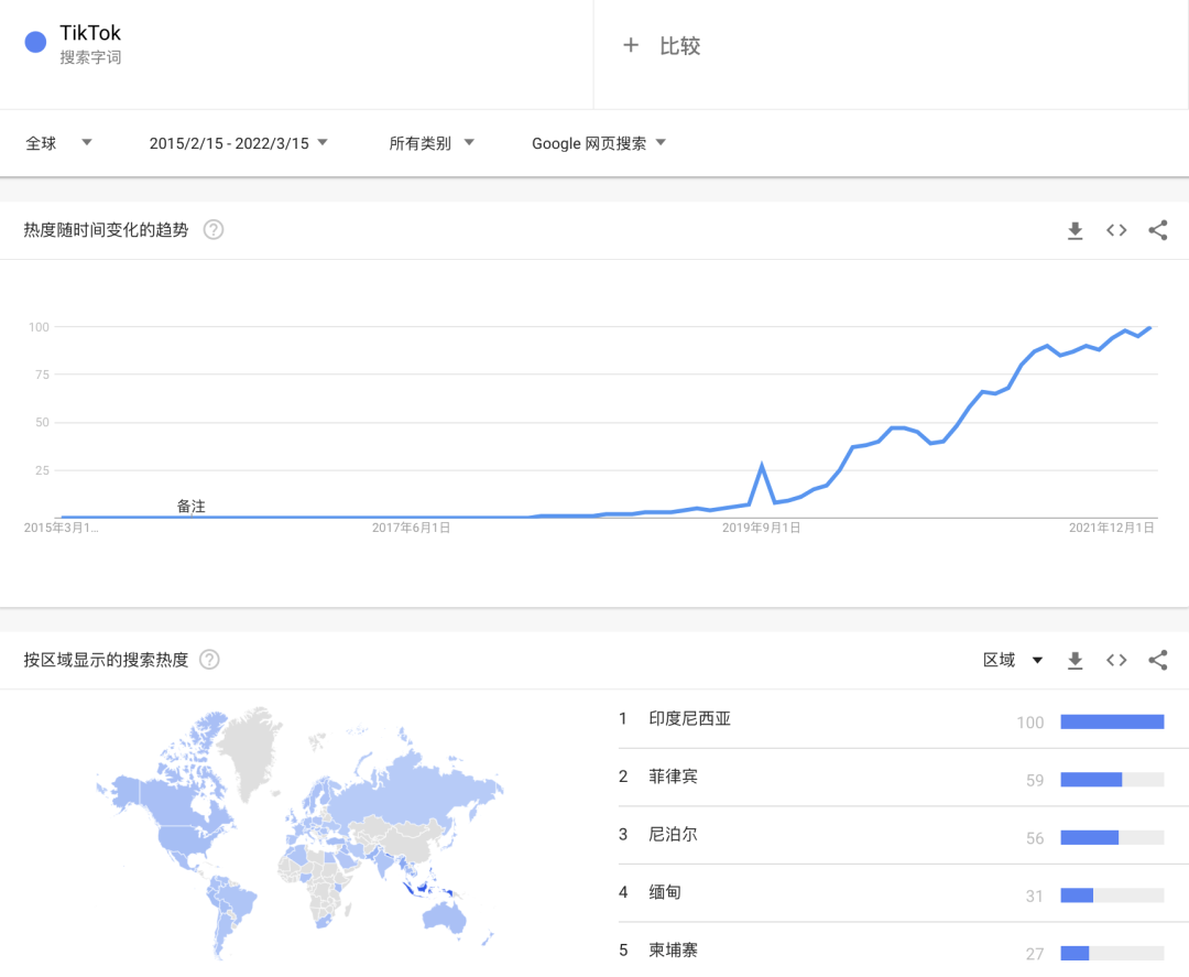 (TikTok谷歌搜索趋势 图源:Google Trends)