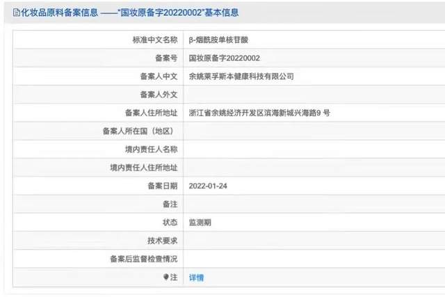 特别值得注意的是,NMN作为外用为主的化妆品原料,和以食用方式进入人体的药品、保健食品等原料,显然不能划等号。但蹊跷的是,近日相关报道对于NMPA公示信息的解读,纷纷将“化妆品原料”与“保健食品原料”两种不同范畴概念混为一谈,似存在对政策误读,或刻意误导投资者之嫌。
