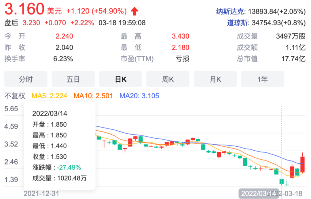 从市场反应来看,知乎的财报并未获得投资人的肯定。在财报公布盘前,知乎股价跌幅为5.7%,美东时间3月14日,知乎收盘价为1.53美元/股,报跌27.49%,总市值8.59亿美元。