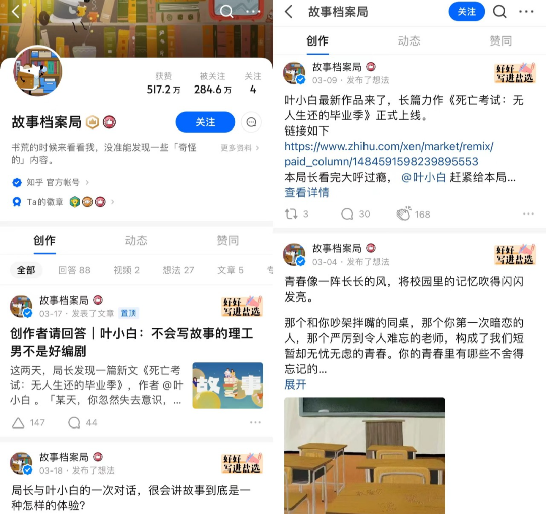 但几年前界面新闻曾报道过,“故事贩卖机”专栏的创建者曾希望知乎提高对这一专栏的重视,但最后的沟通却并不成功,直接导致了一次知乎大V的公开出走行动。