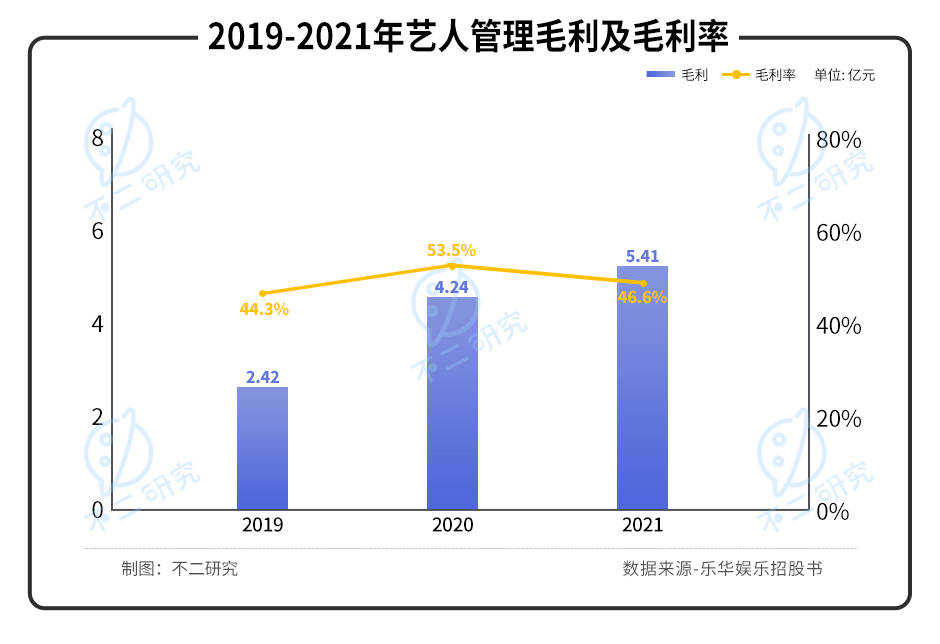 此外,据招股书显示,2019-2021年,艺人管理的成本分别为2.88亿元、3.84亿元和6.34亿元,复合年增长率为33.43%和65.27%,2021年较2020年有所提高。