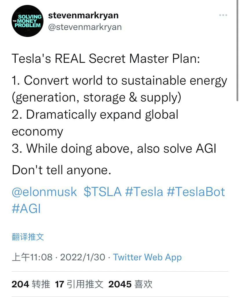 推特上一位深度关注特斯拉的用户@stevenmarkryan早在1月就发表了其对特斯拉总体规划的见解。