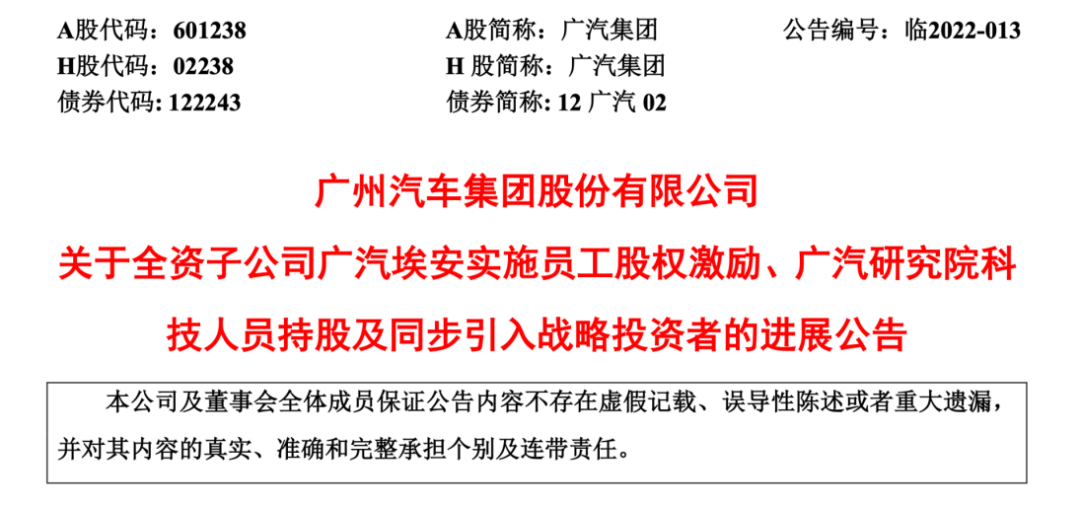 3月17日,广汽集团发布公告称,其全资子公司广汽埃安采取非公开协议增资的方式,引入员工持股平台及产投爱安基金、中国诚通、南方电网等3家战略投资者,共完成融资25.66亿元。本次增资完成后,广汽埃安注册资本将由 60亿元增加至约 64.21亿元。