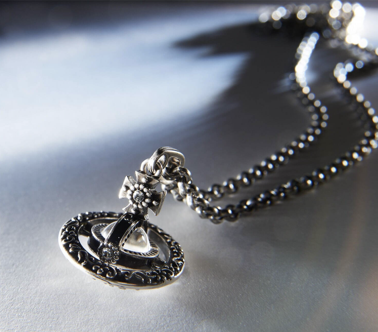 Vivienne Westwood是先锋时尚的代表,她用胸衣解放女性,用怪诞有趣的设计征服时尚界。而Vivienne Westwood 2022春夏珠宝“ORNAMENTAL TINY ORB”打造出不同以往的做旧版复古十字架土星金属项链。