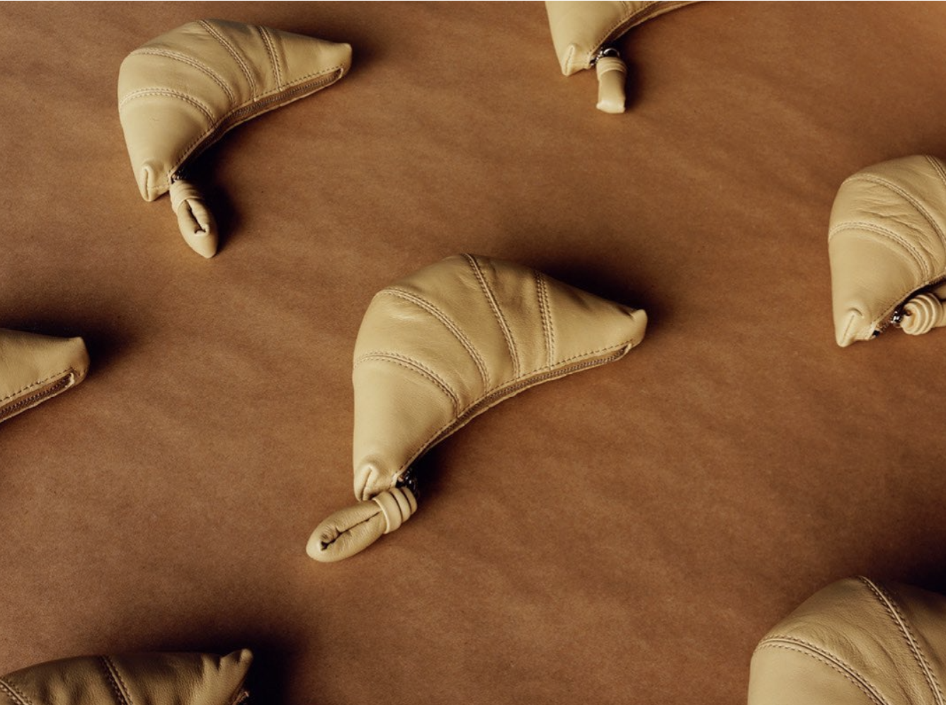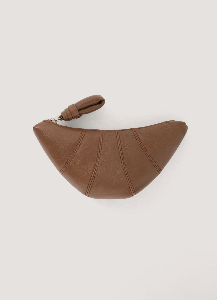 Lemaire零钱包是经典Lemaire“Croissant”羊角包系列的最新成员。由光滑的纳帕皮革制成,其可可爱爱的设计是通过顶部缝合切口的组装实现的,让人想起羊角面包糕点的形状,一个个精致小巧的零钱包,真实还原了商超里的松软可口的手指可颂,光亮的质感像一颗刚从烤箱出炉的Croissant,非常吸睛。
