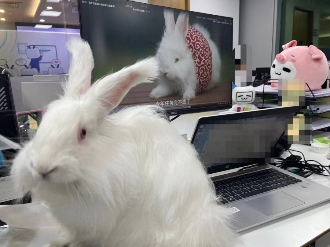 关于乱跑,据李子团透露,狗通常会拴在工位桌腿上,其他小型宠物则可能放养。B站的桃桃养的是巨型安哥拉兔,第二次带去公司时,她见兔子表现还挺老实,就松开了牵绳,没想到一眨眼就跑丢了。对于这种情况,桃桃支招:要么就拴绳,要么就顺应兔子爱安静的习性,少带它到环境嘈杂的办公区。