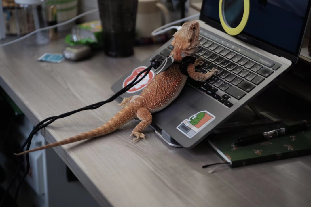 3月11日这天,南方天气回暖,Carrie特地步行200多米回家,把怕冷的蜥蜴带了出来—这是她第一次带宠上班。因为对猫毛过敏,同时怕狗,Carrie一直没养过宠物。一次契机,Carrie发现了蜥蜴这种异宠没有皮毛,不用多费心思,就养了一只。