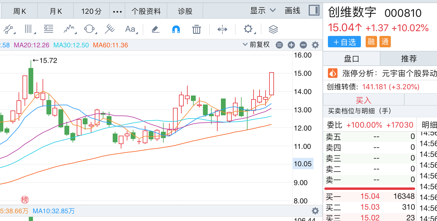 或许是年报中透露的趋势向好影响到了市场,3月22日创维数字应声涨停,15.04元的收盘价距离前期高点已经不远,截至收盘时封单有1.63万手。